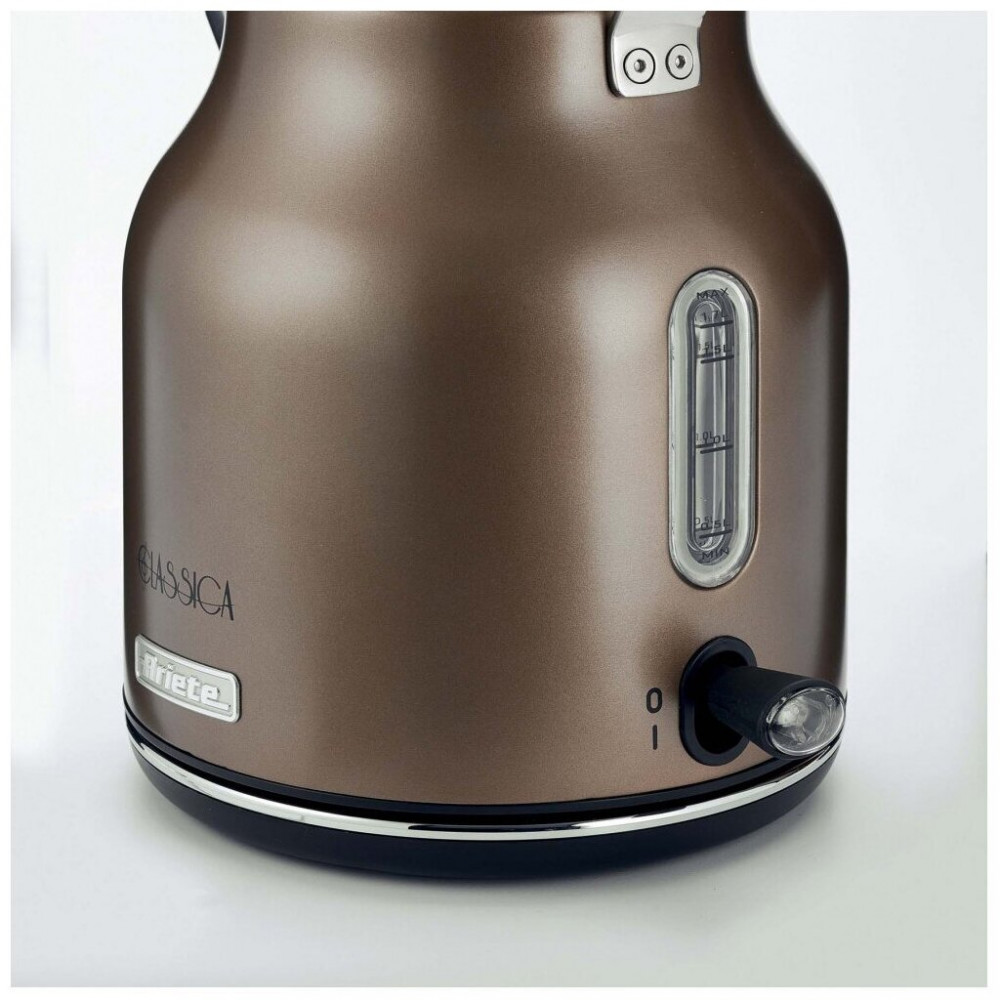 Выбирайте любой из трёх благородных цветов корпуса — тёплая бронза, сияющий изнутри жемчуг или элегантная медь. Настоящая классика — это абсолютная гармония. В электрическом чайнике Ariete Classica элегантность оформления сочетается с удобством использования. Благодаря съёмному фильтру, системе автоматического отключения, эргономичной ручке, индикатору уровня воды и вращающейся на 360 градусов базе, новый электрочайник от итальянских дизайнеров необычайно удобен в использовании и уходе. Стальной корпус очень прочен и выглядит просто отлично! Красивая и надёжная техника для дома.