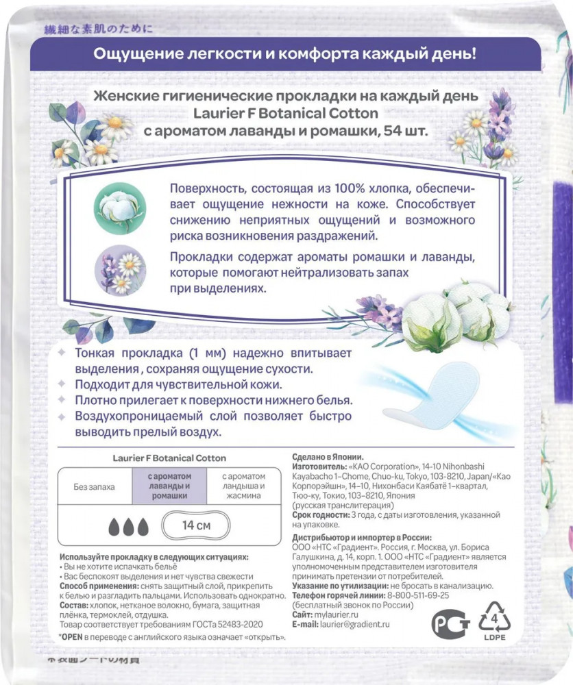 Laurier Прокладки ежедневные «Botanical Cotton»