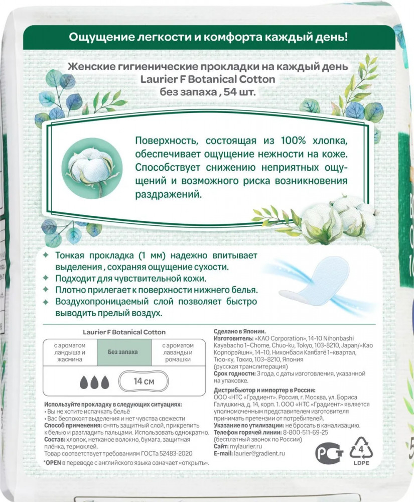 Laurier Прокладки ежедневные «Botanical Cotton»
