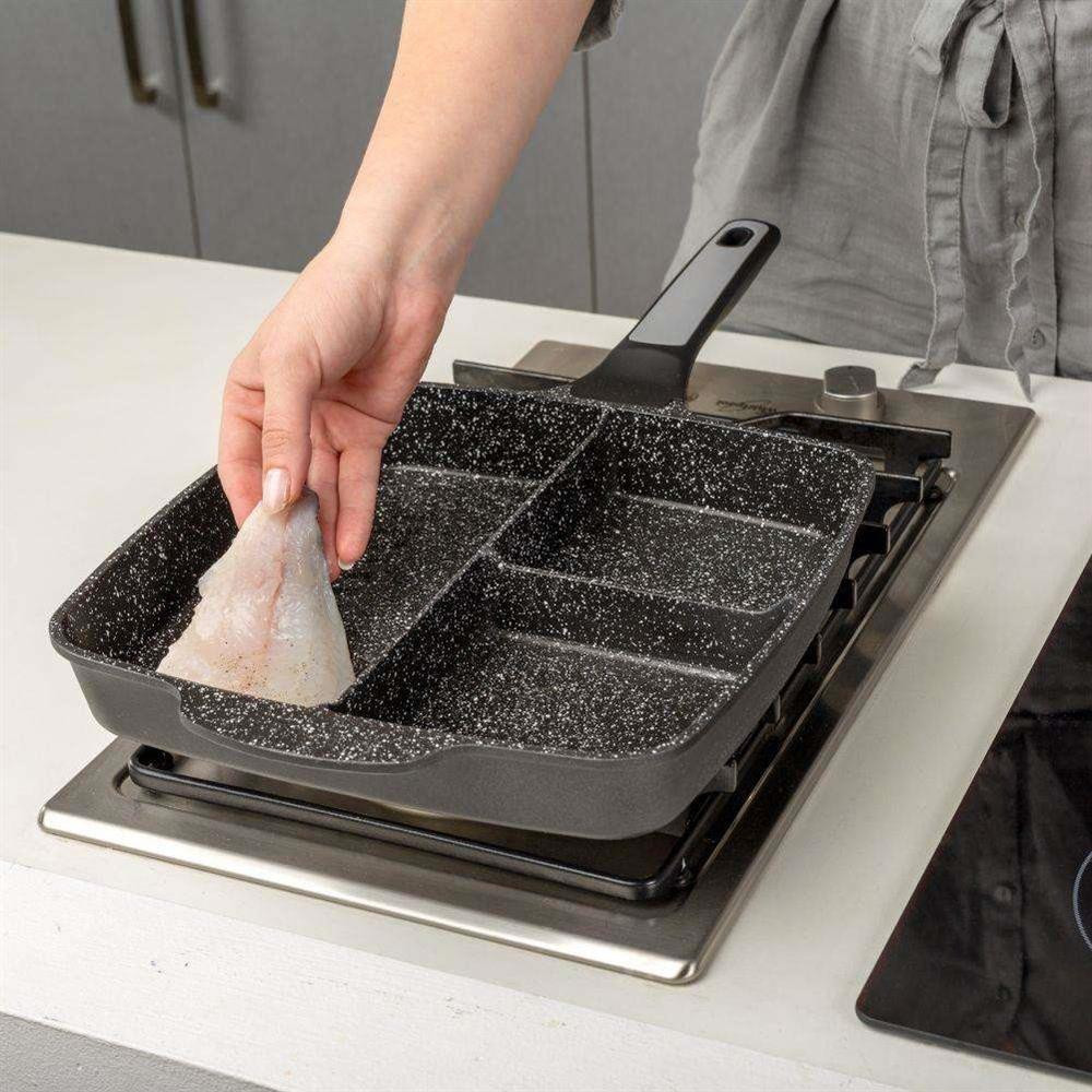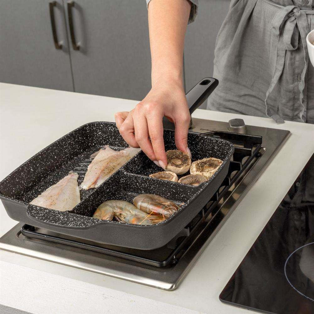 Nava Сковорода 3 в 1 «Funtzio»В данный момент этот товар отсутствует в продаже. Возможно, у нас найдется аналогичный или похожий товар здесь. Серия: Funtzio Новое поколение посуды с антипригарным каменным покрытием. Для изготовления и упаковки используются перерабатываемые материалы. Высококачественное и прочное керамическое покрытие обеспечивает высокую устойчивость к царапинам и высоким температурам (до 300°C). Производится с применением технологии, позволяющей уменьшить выбросы диоксида углерода, а также без использования PTFE и PFOA. |