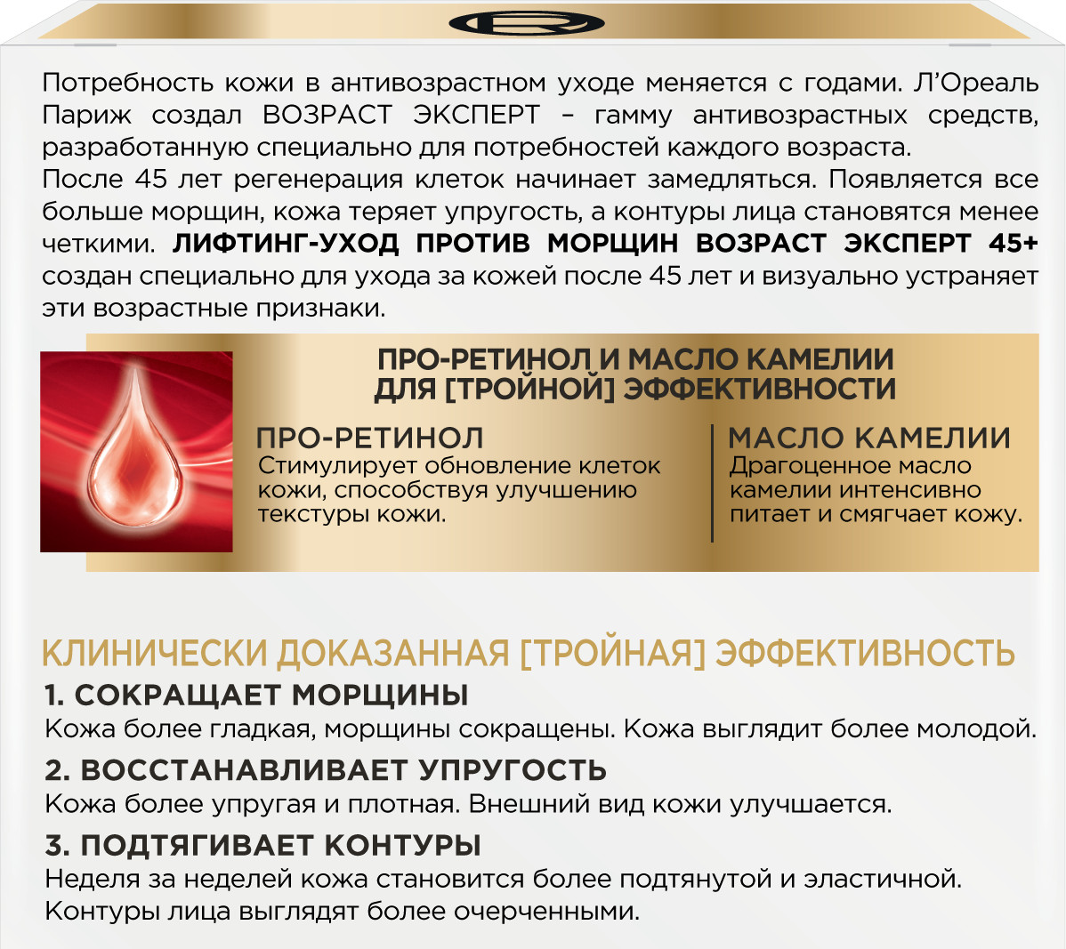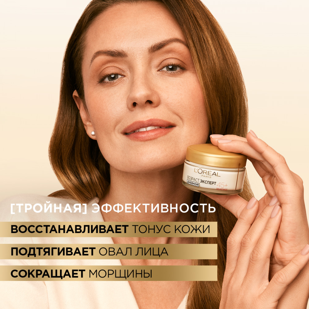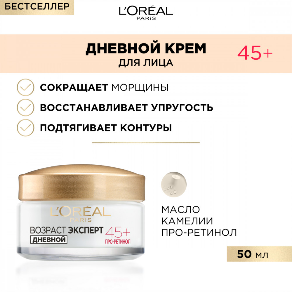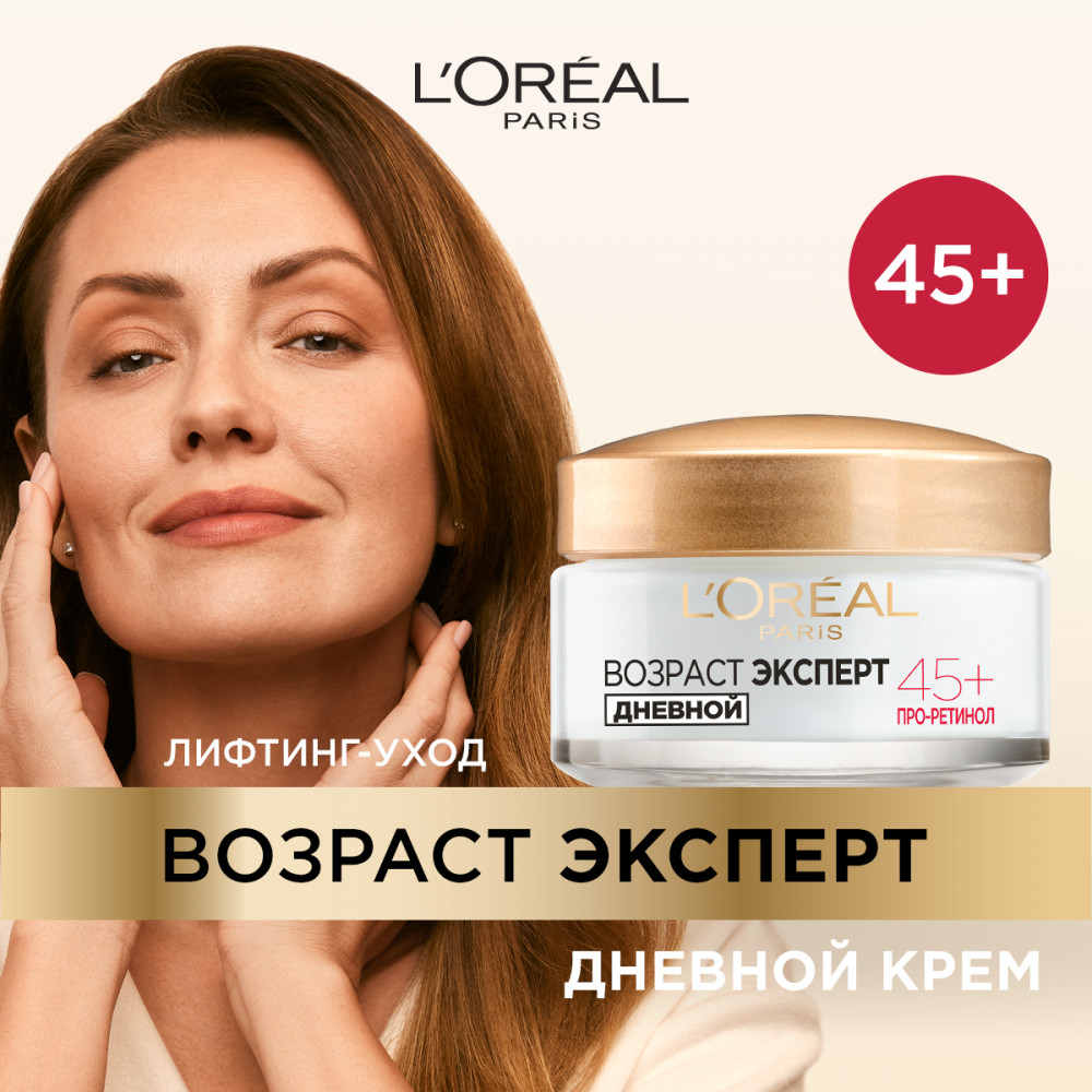L'Oreal Paris Дневной крем «Возраст Эксперт 45+» против морщин, лифтинг-уход-28% +109 лёгкая текстура быстро впитывается увлажнение под макияж