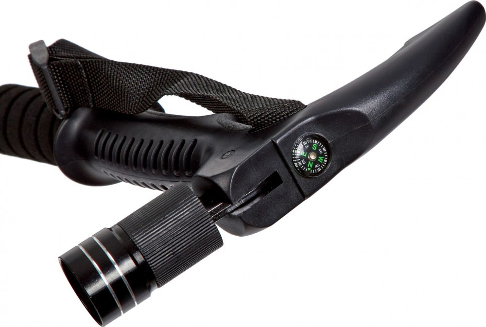 Уверенную ориентацию в пространстве обеспечивает анатомическая нескользящая рукоятка, которая снабжена светодиодным фонариком, страховочным ремешком на запястье и компасом. Трость быстро складывается и раскладывается. Станет надежным спутником в любой жизненной ситуации и при любых погодных условиях.
