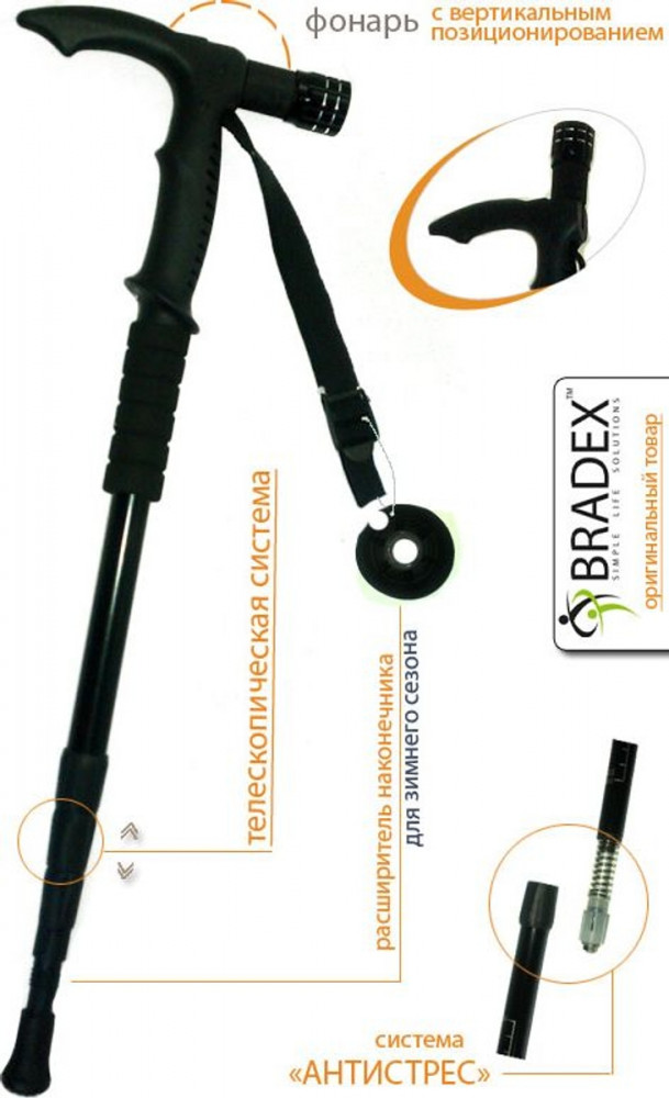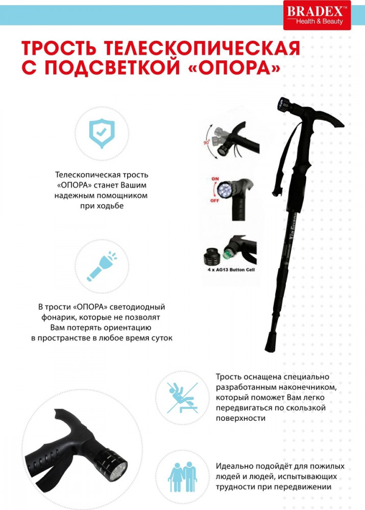 | Bradex Трость для ходьбы телескопическая с подсветкой «Опора»