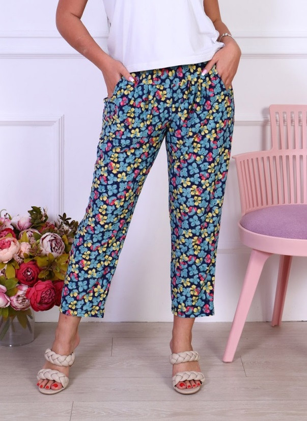 В жаркую погоду не душно. Комфортные брюки с весёлым растительным принтом на лето, для прогулок или на дачу.
