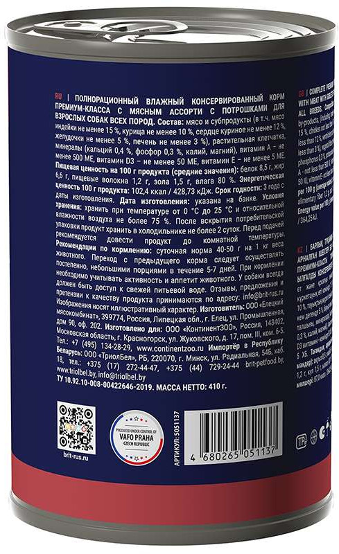 Brit Консервы для собак всех пород с мясным ассорти и потрошками