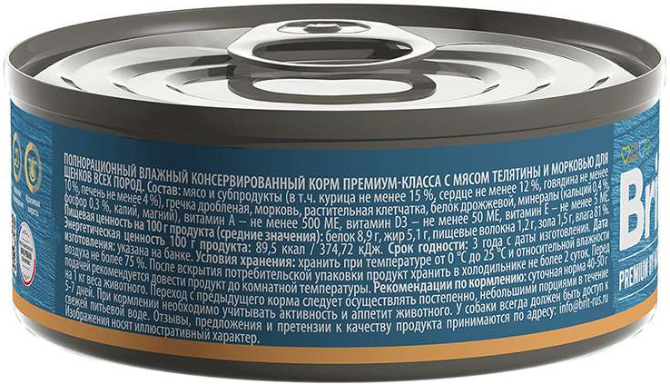 Brit Консервы для щенков всех пород с телятиной и морковью