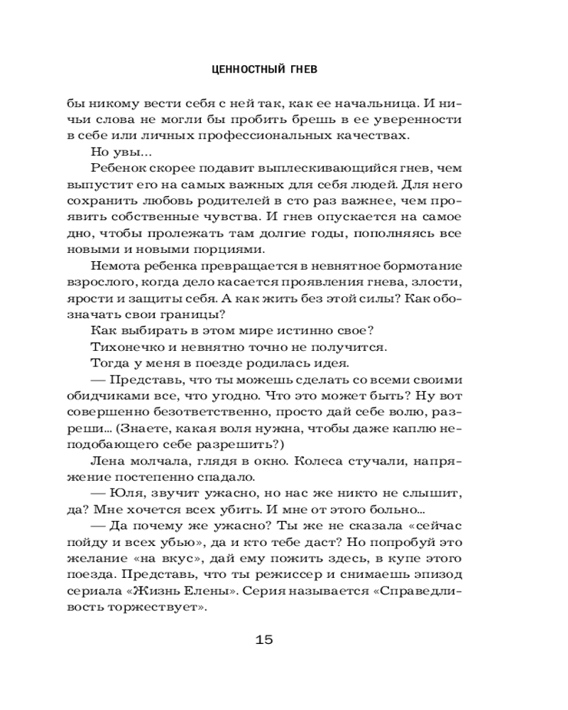 Книга написана легко, истории из жизни автора, притчи, житейские ситуации помогают раскрывать совершенно необычные развороты в подходе к пониманию своих чувств. Считаю, что прочитать ее следует каждому. Этот тот самый вариант, когда, читая книгу, словно разговариваешь с очень мудрым и любящим тебя человеком. От души рекомендую!