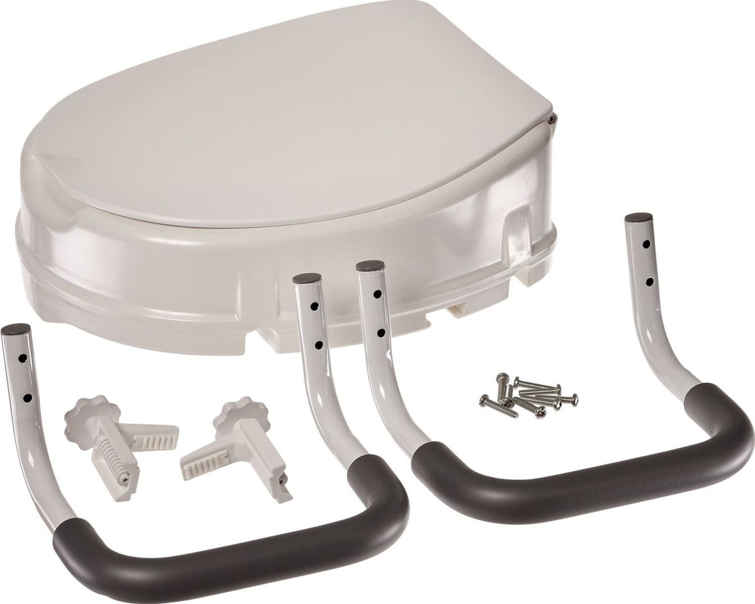Сиденье насадка для унитаза предназначено для людей с ограниченными физическими возможностями во время реабилитации, с заболеваниями опорно-двигательного аппарата или в силу возраста. Эргономичное сиденье большей высоты оборудовано двумя поручнями по бокам для равномерного распределения нагрузки на руки и ноги: с ним гораздо проще садиться и вставать. Высококачественный пластик и надежная стальная конструкция выдерживает вес до 100 кг.
