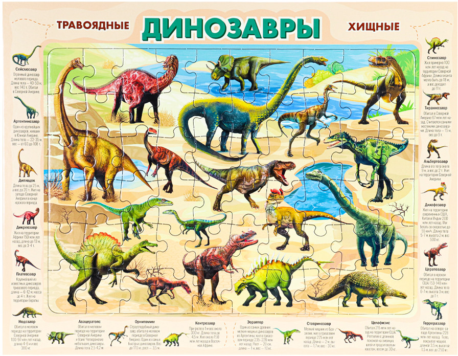 Рыжий кот Пазл-рамка «Динозавры»В данный момент этот товар отсутствует в продаже. Возможно, у нас найдется аналогичный или похожий товар здесь. Увлекательный пазл-рамка «Динозавры» понравится любому ребенку! Такая занимательная игра прекрасно развивает мелкую моторику рук, память и внимание. Есть заметки на полях. |