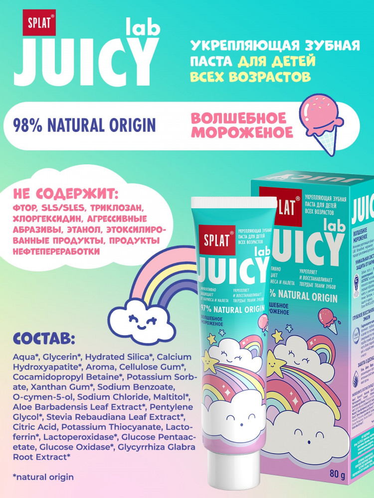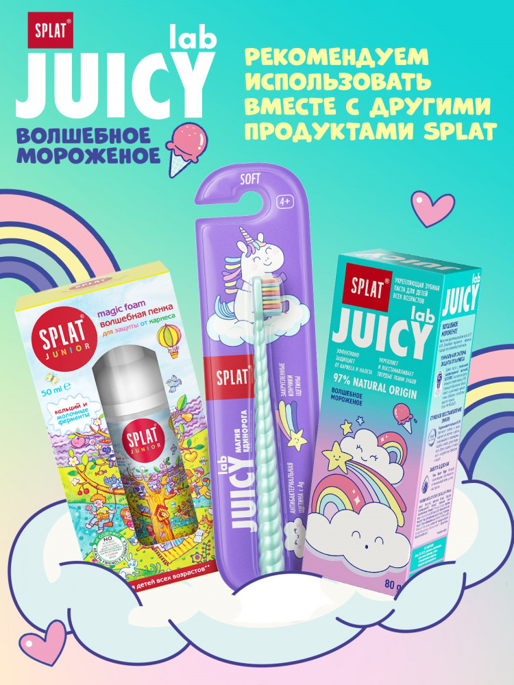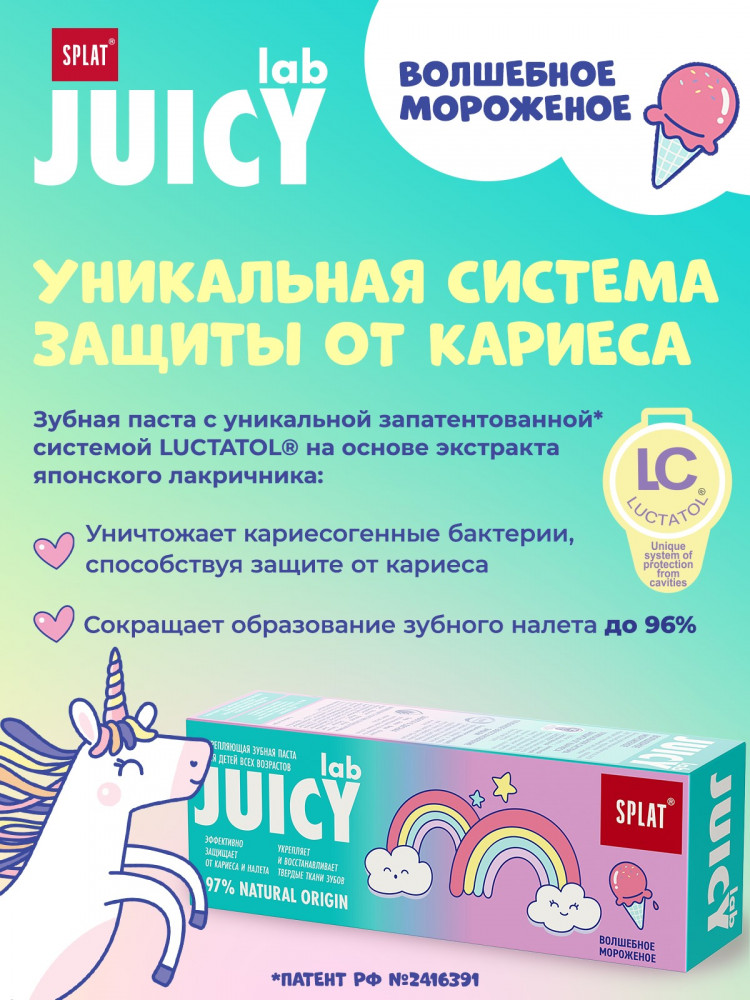 Splat Зубная паста детская "Волшебное мороженое"В данный момент этот товар отсутствует в продаже. Возможно, у нас найдется аналогичный или похожий товар здесь. Серия: Juicy Lab Интенсивно укрепляющая зубная паста Juicy Lab Волшебное Мороженое идеально подходит для уязвимой детской эмали. 98% Natural origin |