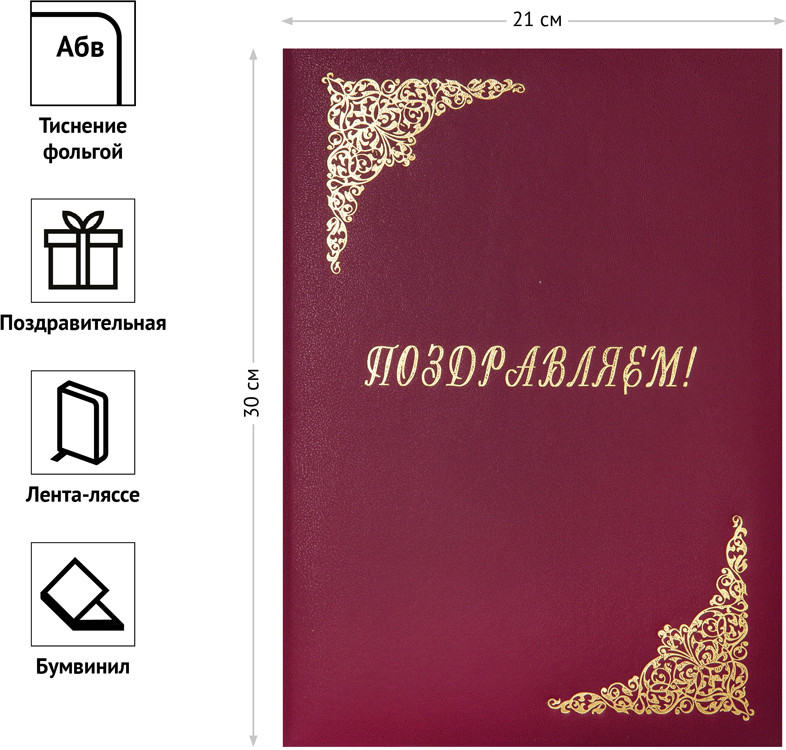 💳 Оплатить за товар можно при получении 🇰🇿 Есть бесплатная доставка по Казахстану от 1 дня 🎁 Копите бонусы с каждой покупки Папка адресная OfficeSpace серии «Поздравляем!» формата А4 предназначена для поздравления с важным событием. Изделие выполнено из прочного картона бордового цвета с покрытием из бумвинила. Обложка изделия украшена тиснением из фольги. Внутренний способ крепления документов — лента-ляссе. |