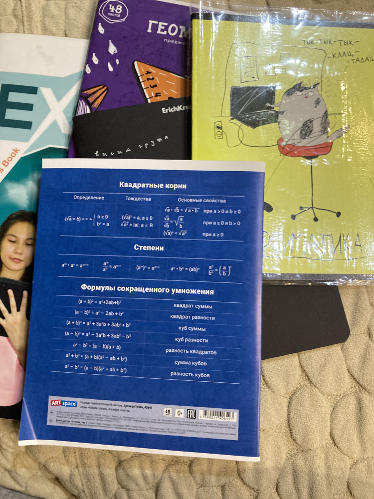 Тетрадь хорошая, «уютная» Для меня) Подсказки особенно формулы классные (в 7 класс советую) и в остальные тоже, но прям как такого справочника нету Дополнительно желательно обложку