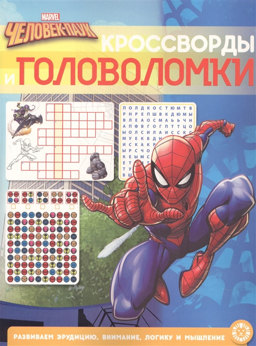 Кроссворды и головоломки «Человек-Паук» - отлично изданная книжка. Ламинированный красивый переплёт из тонкого картона, шесть белых страниц с двух сторон задания разного характера. Например "Найди отличия"; "Зоркий глаз"; "Мстители навсегда" и так далее. В конце книжки ответы на задания. Все рисунки выполнены красиво, цветные. Отличная книжка, очень понравилась.