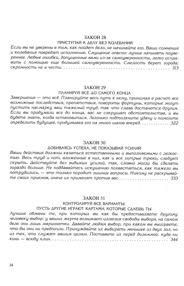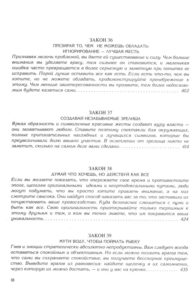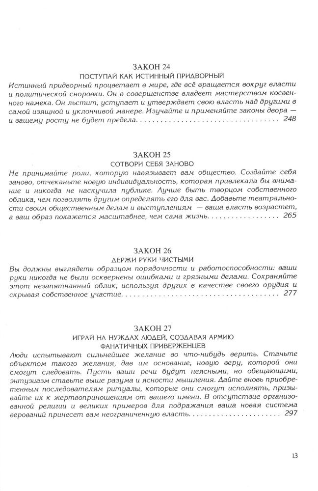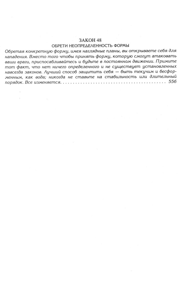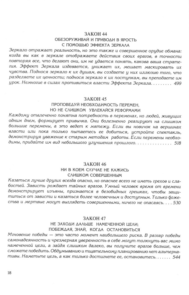 Книга которую обязан прочесть каждый! И это не шутки! Роберт Грин проделал огромнейшую работу, собрал и обработав очень большое количество материалов. Любой из 48 законов можно применять и в повседневной жизни. И не обязательно для того, чтобы лишь манипулировать. После прочтения книги я увлеклась игрой в Го – подобие нардов, любимая игра Конфуция. Не очень хорошее качество печати, но во время прочтения книга, на это не обращаешь внимания