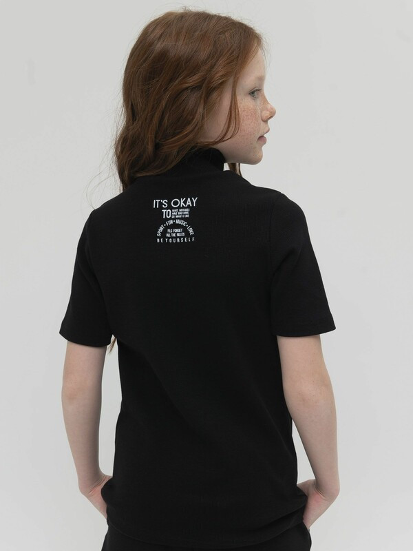 Футболка в школу из нежного, мягкого материала кашкорсе. Высокая горловина стойка и рукав не сильно обтягивают и дают свободу движений. Текстовый принт на спине привлекает внимание и создает настроение. Можно носить с любым верхом и в качестве самостоятельного предмета одежды. Удобная не только для школы, но и для прогулок, встреч с друзьями.