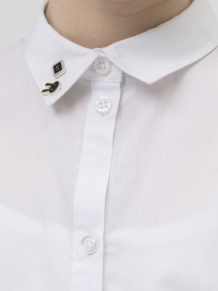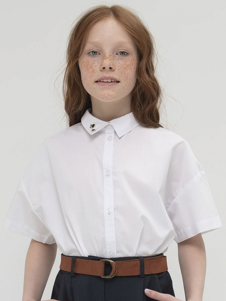 Школьная рубашка для девочки оверсайз. Ткань отлично держит форму, легко гладится и мало мнётся. Подойдёт для любой фигуры. Свободный прямой силуэт позволит быть собой и активничать не только на уроках, но и на переменах. Крутая деталь: съемные графичные значки пины! Их можно крепить не только на воротник, но и на джинсы, жакет или сумку. А еще ими интересно обменяться с подружкой.