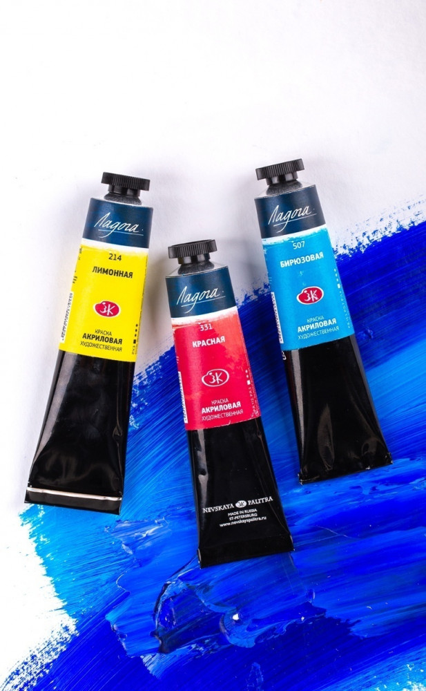 Краска акриловая, 335 розовый светлый. Свежая (выпуск: апрель 2022). Однородная, хорошая консистенция, с добавлением пигмента P.W.6 (белила титановые)- придает чуть больше укрывистости. Также и в N 605 фиолетовый светлый (выпуск: сентябрь 2021). Легко наносятся.
