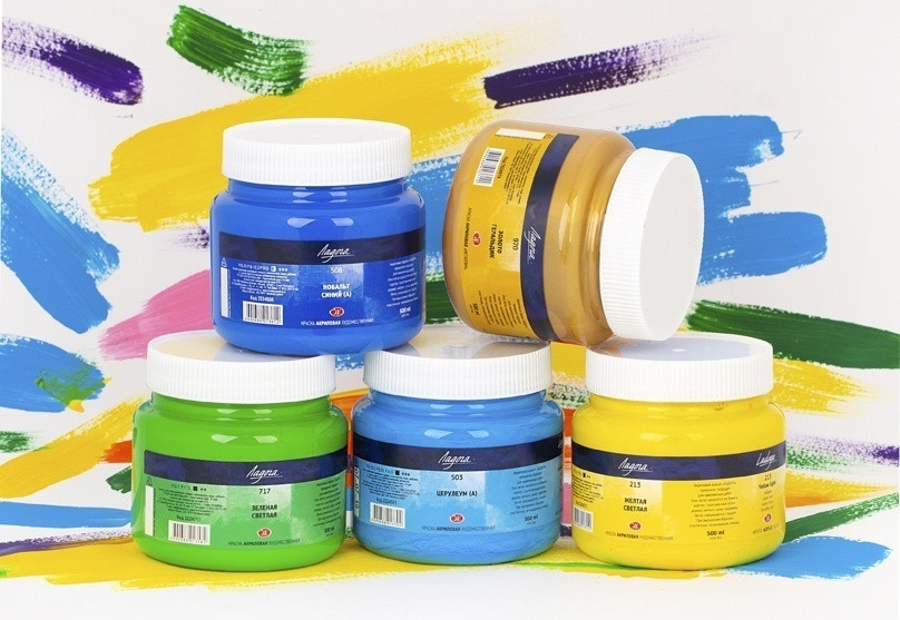 Краска акриловая, 335 розовый светлый. Свежая (выпуск: апрель 2022). Однородная, хорошая консистенция, с добавлением пигмента P.W.6 (белила титановые)- придает чуть больше укрывистости. Также и в N 605 фиолетовый светлый (выпуск: сентябрь 2021). Легко наносятся.
