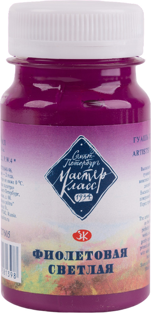 Мастер-Класс Гуашь художественная, 605 фиолетовый светлый