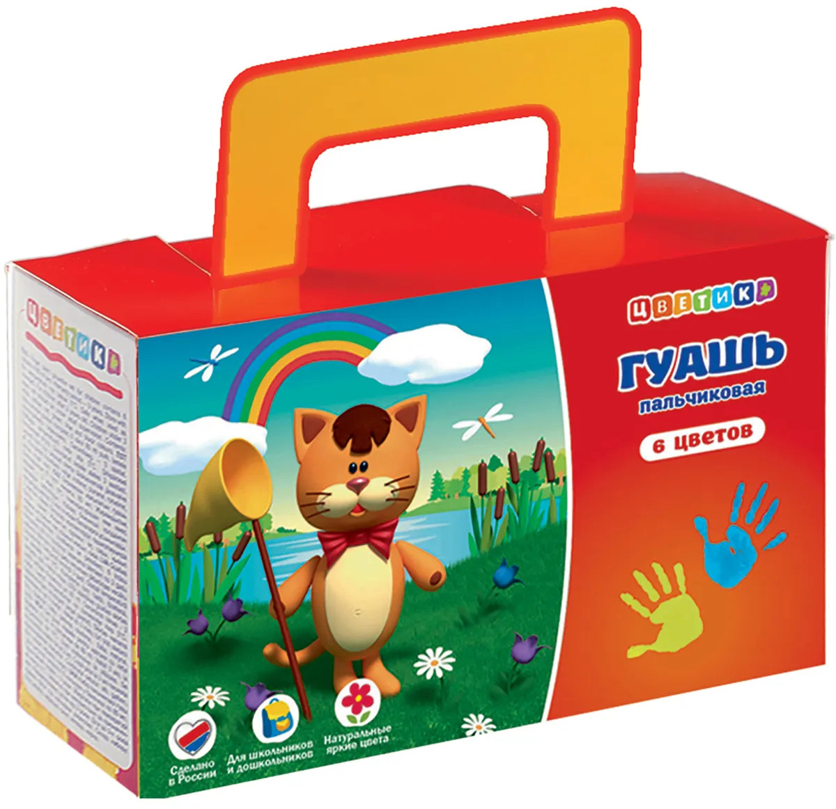 Набор пальчиковой гуаши «Цветик» состоит из 6 цветов в баночках по 80 мл. Рисование пальцами — это увлекательный процесс, помогающий развивать тактильные ощущения у детей. Краски при высыхании приобретают матовую, бархатистую поверхность. Легко смываются с рук, большинства типов тканей и мебели. Легко наносятся на бумагу и картон с помощью кисти.
