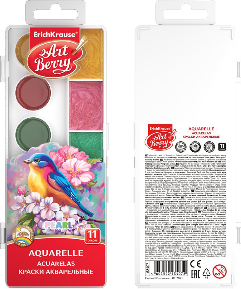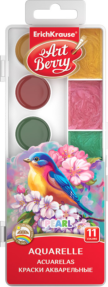 Erich Krause Акварель с УФ защитой яркости «Pearl»В данный момент этот товар отсутствует в продаже. Возможно, у нас найдется аналогичный или похожий товар здесь. Серия: Artberry Акварельные краски «ArtBerry» с УФ защитой яркости. Классические яркие цвета и актуальные перламутровые цвета в увеличенных кюветах легко смешиваются и сочетаются между собой, равномерно ложатся на бумагу, обладают улучшенной цветопередачей и не выгорают на солнце благодаря УФ защите. |