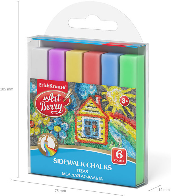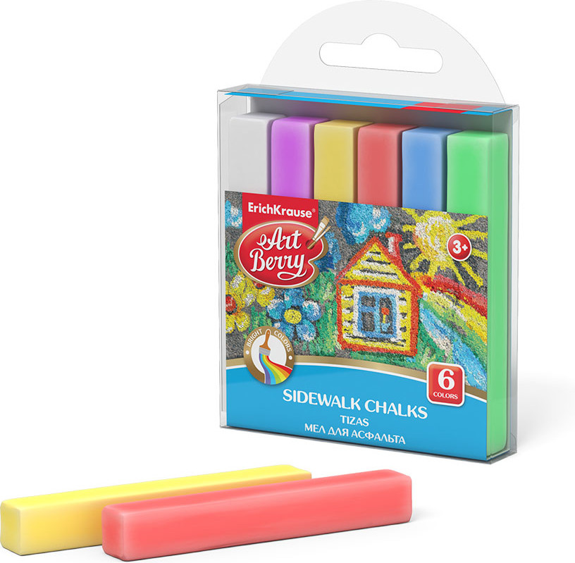 Цветной мел для асфальта ярких и насыщенных цветов. Мелки легко и мягко пишут, не крошатся. Не пачкают руки и оставляют минимум пыли. Изготовлены из натурального природного сырья без химических добавок.