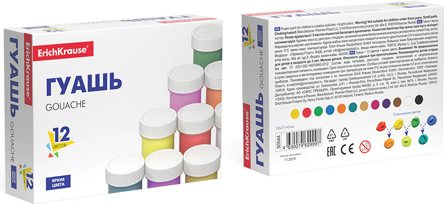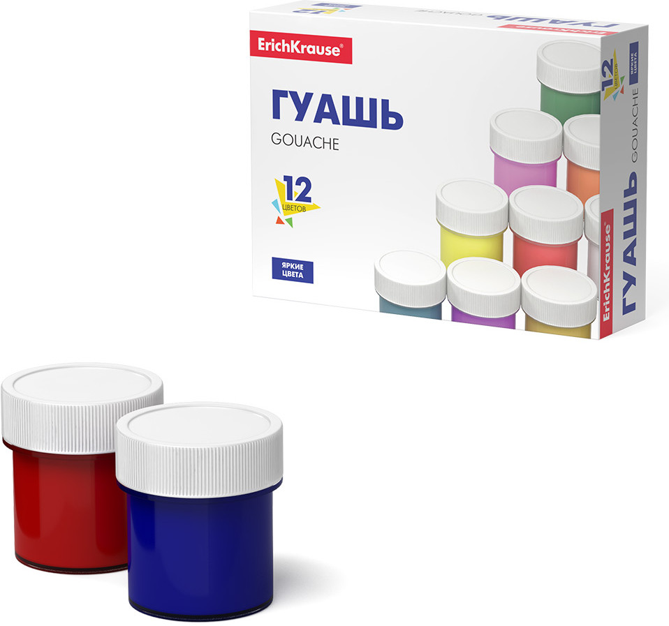 Erich Krause Набор гуаши-20% +54 яркие цвета густая консистенция подходит для детей хорошее качество подходит для начинающих неоднородная консистенция