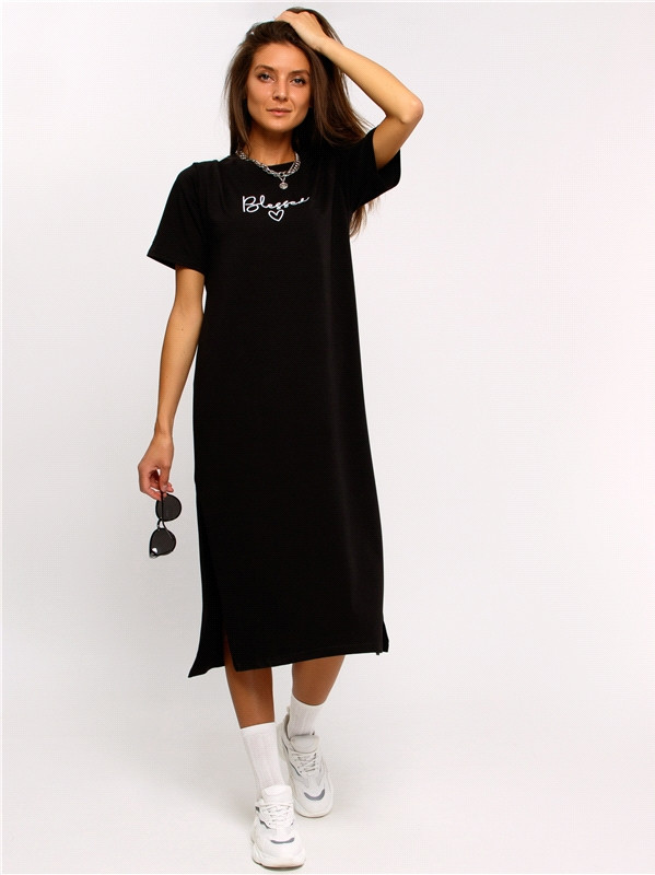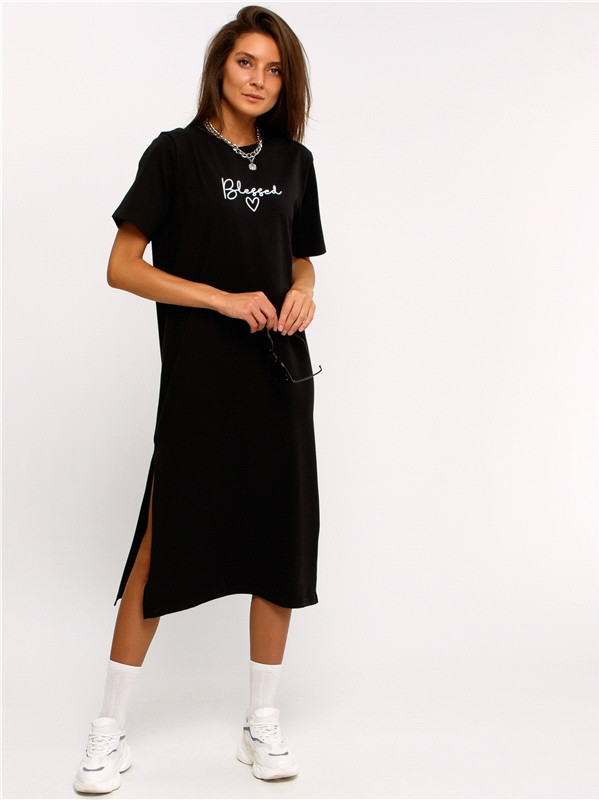 Платье очень хорошее-удобная длина,сбоку разрезы,стройнит, идет размер в размер. Рекомендую к покупке!