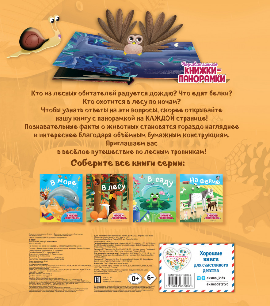 В лесуВ данный момент этот товар отсутствует в продаже. Возможно, у нас найдется аналогичный или похожий товар здесь. Серия: Познавательные книжки-панорамки Это красочная и весёлая книга, посвящённая лесным животным. На каждой странице сюрприз — объёмный панорамный элемент, благодаря которому иллюстрация оживает. Читайте историю, разглядывайте картинки и отвечайте на простые вопросы — весёлый досуг вам обеспечен! |