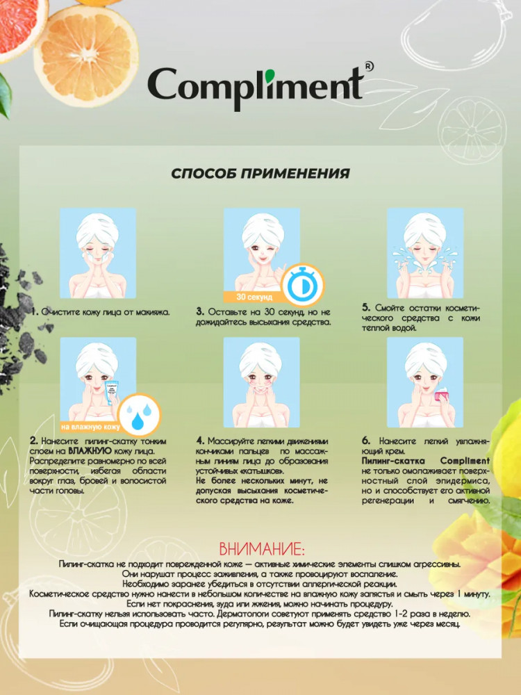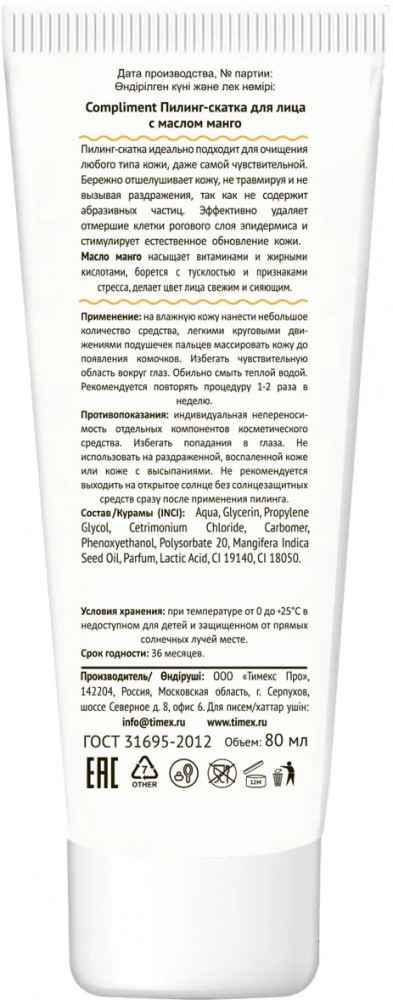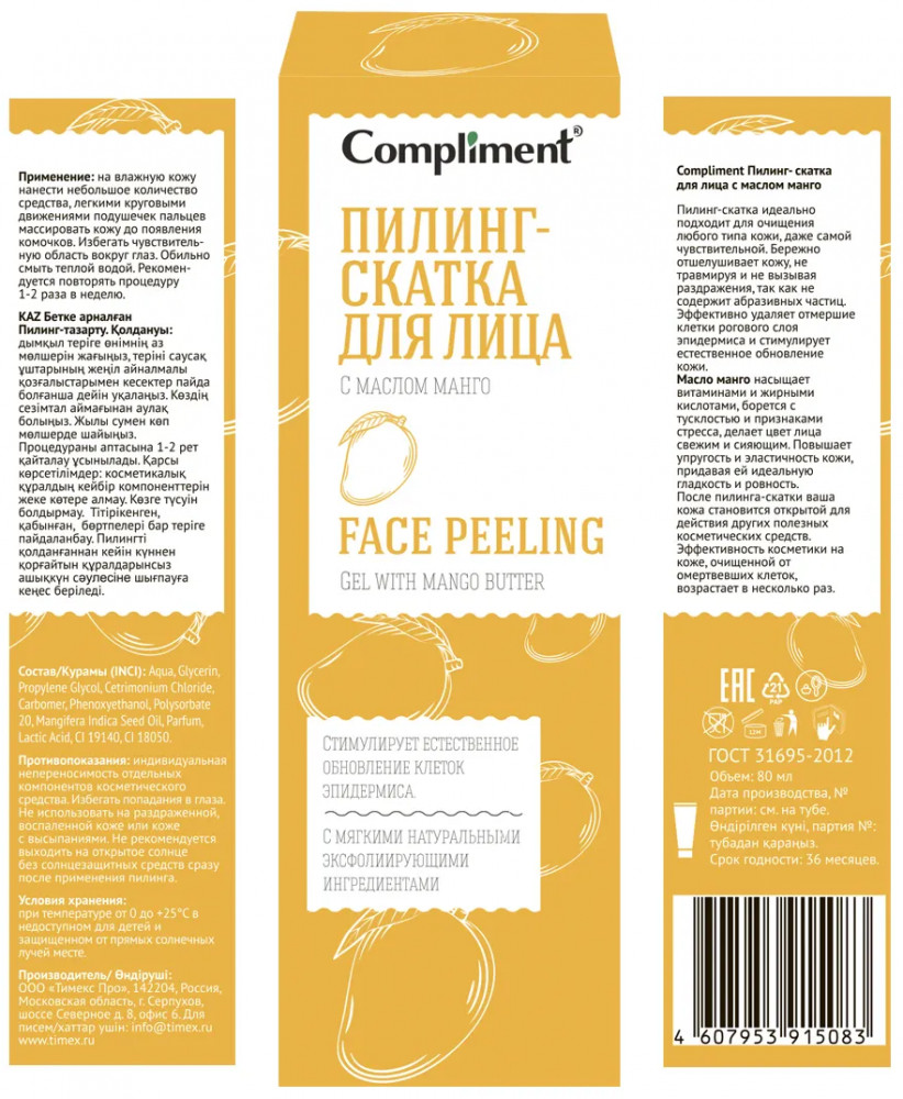 Compliment Пилинг-скатка для лица с маслом манго-20% +35 мягкое отшелушивание приятный аромат мягкая кожа не раздражает не смывается