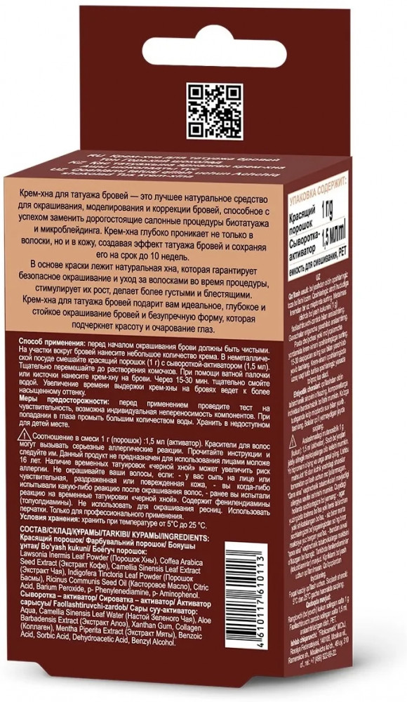 Фитокосметик Крем-хна для татуажа бровей, оттенок «Горький шоколад»