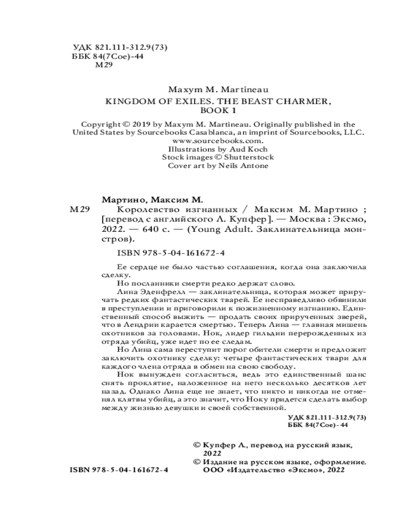 Изгнанные Заклинатели, зачарованные звери и соблазнительные убийцы. Уникальный мир, полный интриг, опасностей и магии. Эта история заставит поклонников с замиранием сердца ждать продолжения. |