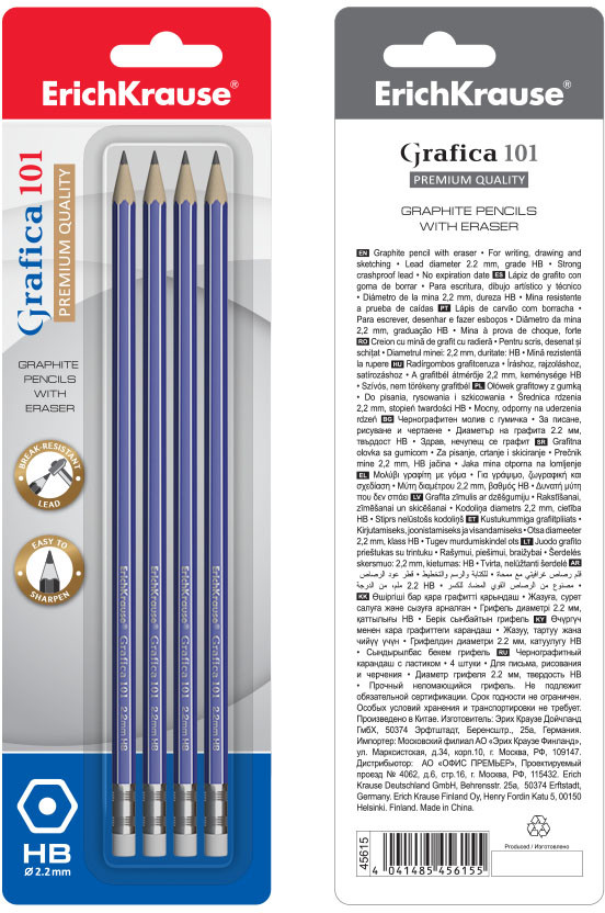 Erich Krause Карандаш чернографитныйВ данный момент этот товар отсутствует в продаже. Возможно, у нас найдется аналогичный или похожий товар здесь. Серия: Grafica 101 Классический шестигранный чернографитный карандаш из отборной древесины с ластиком, твердость НВ. Специальная пропитка древесины и сплошная проклейка грифеля обеспечивает высокую ударопрочность. Мягкая древесина и идеальная центровка грифеля гарантируют легкую заточку с экономным расходом карандаша. |