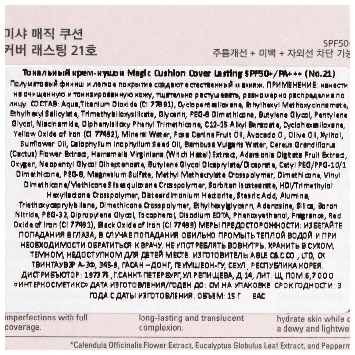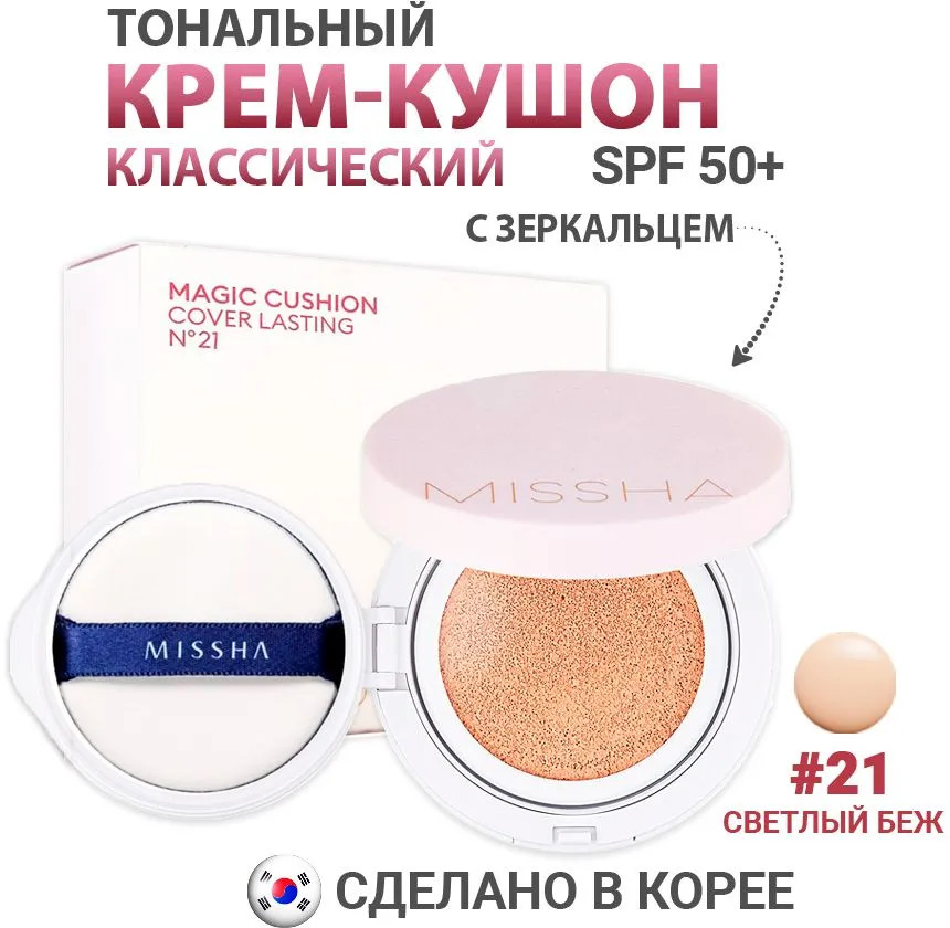 Missha Кушон для лица тональный PA+++ SPF 50+ «Magic Cushion Cover Lasting», оттенок 21 Светло-бежевыйВ данный момент этот товар отсутствует в продаже. Возможно, у нас найдется аналогичный или похожий товар здесь. Тональное средство в компактной упаковке — тональный крем-кушон с превосходным покрытием MISSHA Magic Cushion Cover Lasting. Средство обладает потрясающими маскирующими способностями и отлично справляется с маскировкой несовершенств кожи. Благодаря удобному пористому спонжу средство ровно ложится на кожу очень тонким слоем, делая макияж естественным. Тональный кушон содержит в своем составе сок бамбука и экстракт гамаммелиса, благодаря чему обладает успокаивающим кожу эффектом, контролирует работу сальных желез и препятствует появлению жирного блеска в области Т-зоны. |