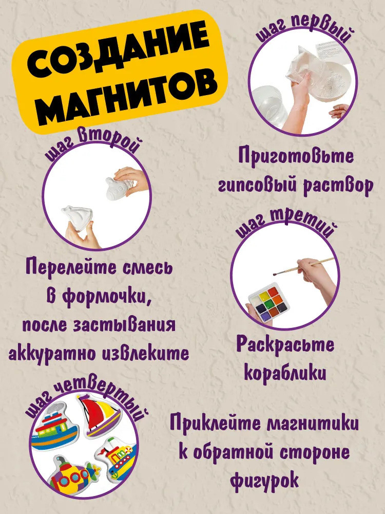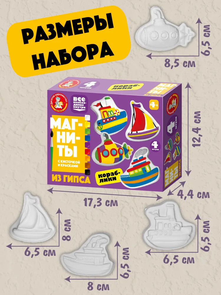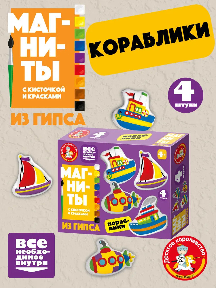| Десятое королевство Набор для изготовления магнитов из гипса «Кораблик»+53 (бонуса)