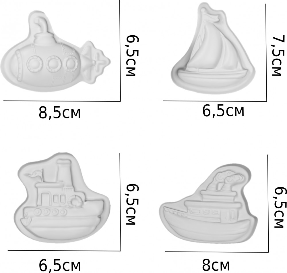 • формочки (размер каждого элемента от 5 до 7 см) — 4 шт;