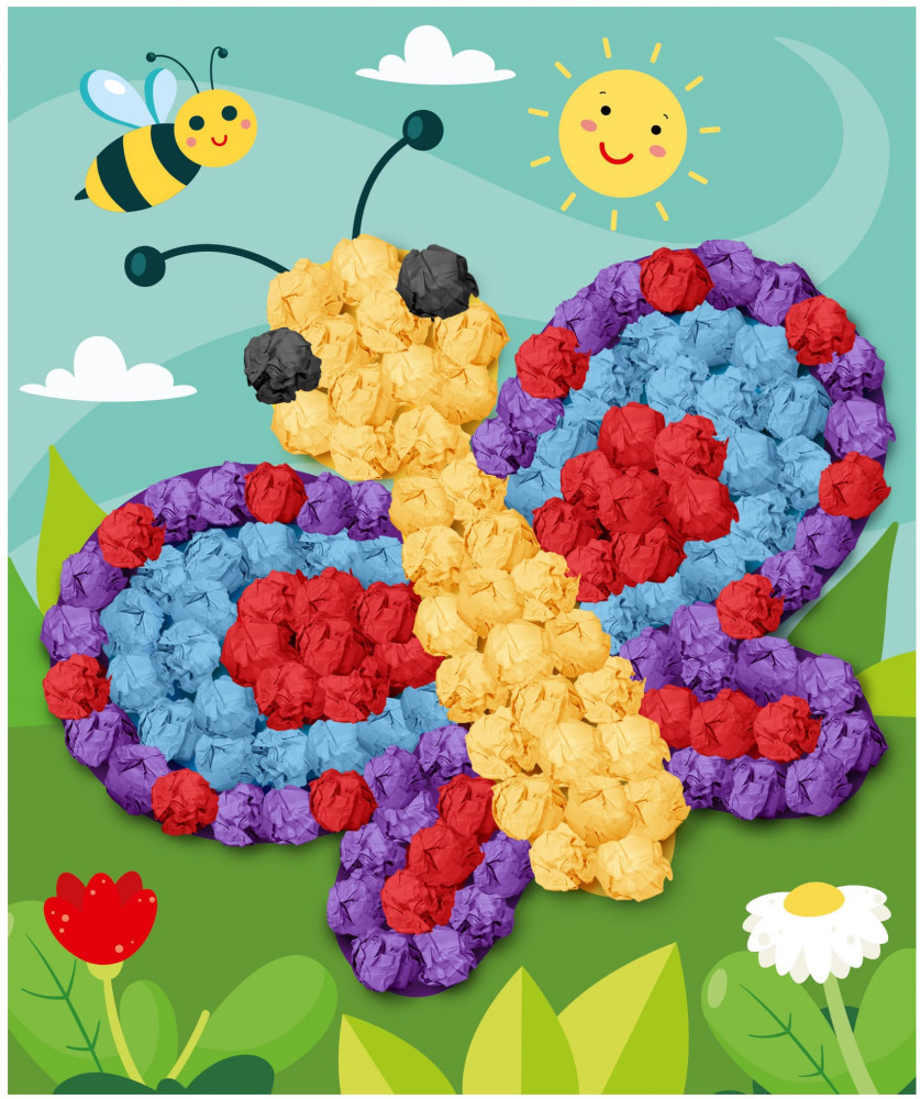 Аппликация из тишью «Бабочка» направлена на развитие мелкой моторики, концентрации внимания и абстрактного мышления у детей.