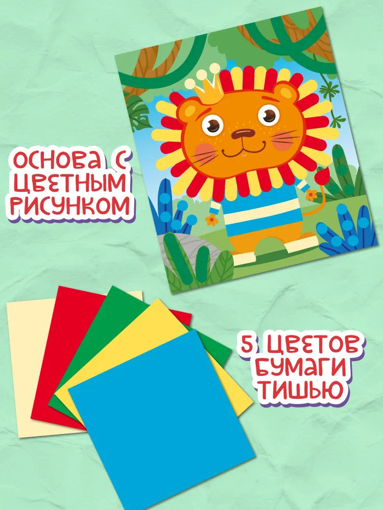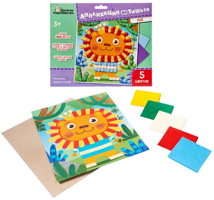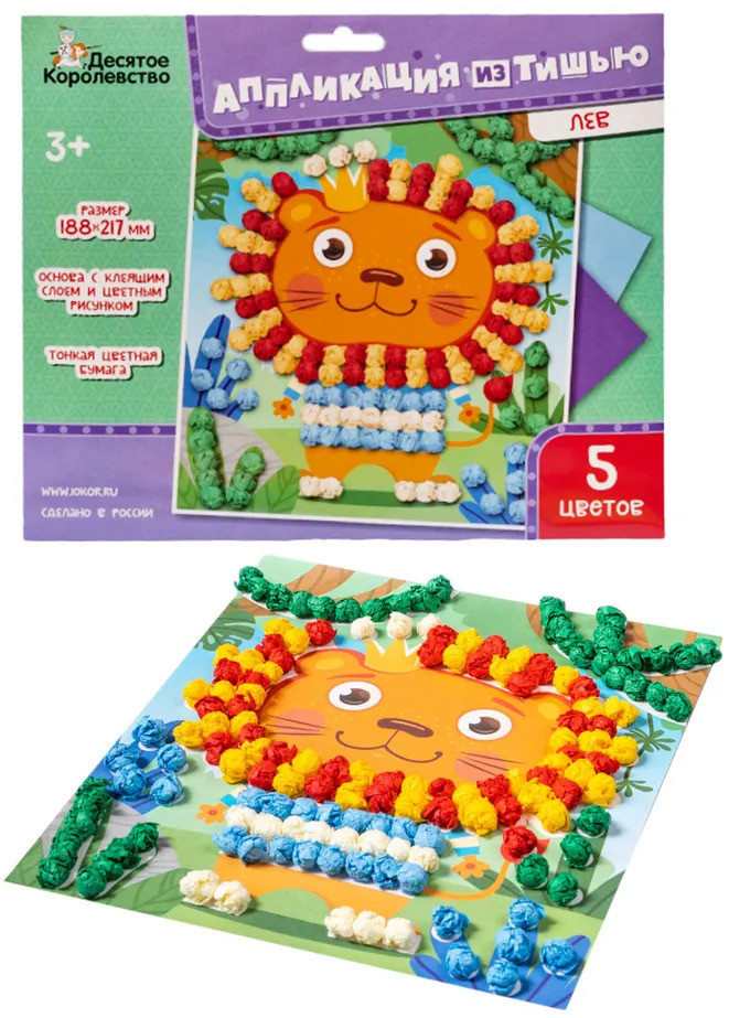 💳 Оплатить за товар можно при получении 🇰🇿 Есть бесплатная доставка по Казахстану от 1 дня 🎁 Копите бонусы с каждой покупки Набор для детского творчества Аппликация из тишью «Лев» состоит из цветной карточки с ярким изображением и листов цветной бумаги тишью. |