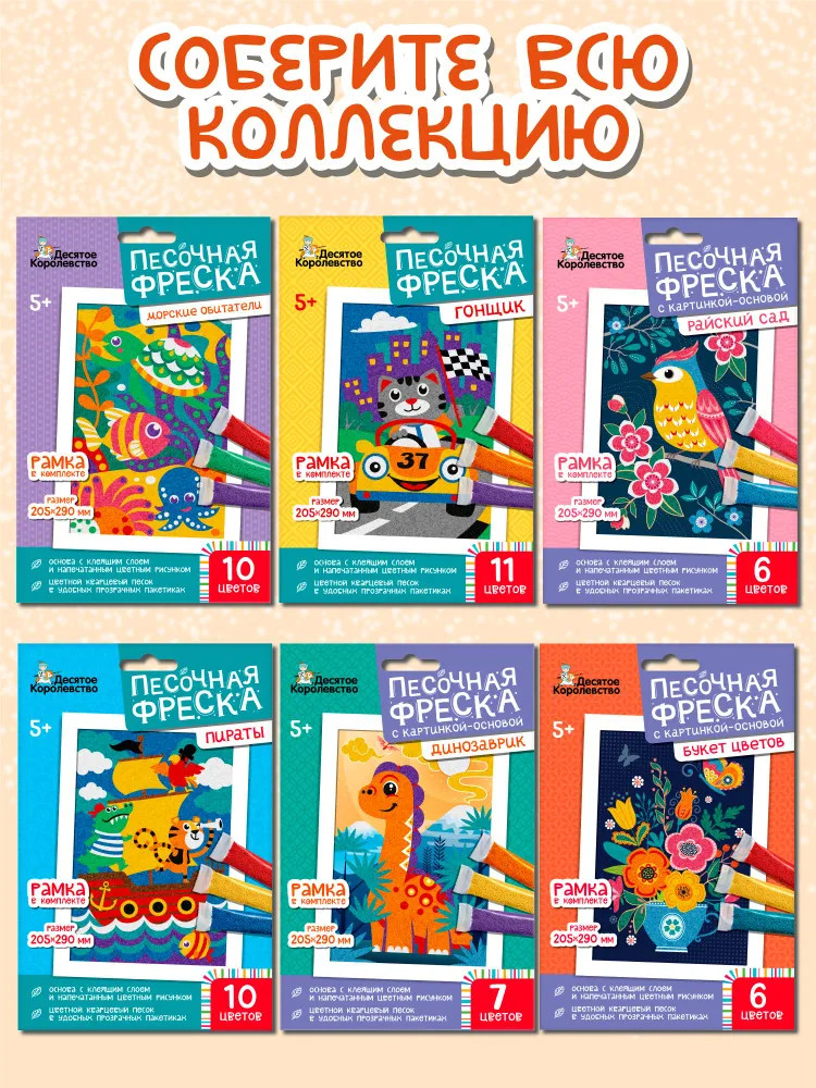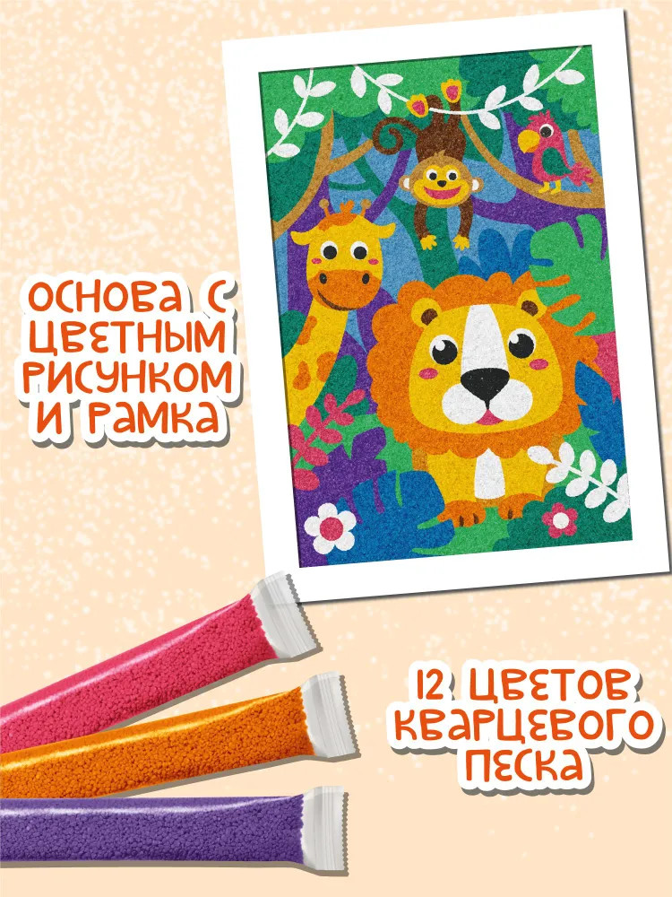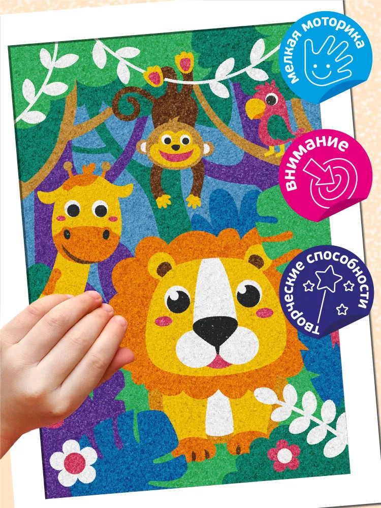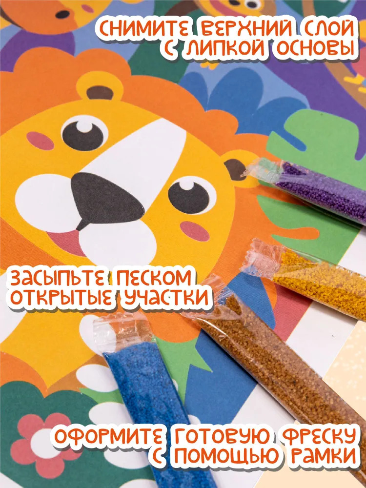 Подарите вашему ребёнку увлекательный набор для творчества — песочную фреску — и создайте своими руками красочную открытку! Работа с песочной фреской поможет развить творческие способности ребёнка, а также потренирует мелкую моторику рук, научит малыша аккуратности и вниманию.