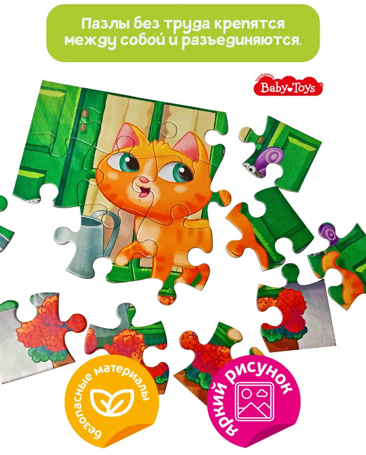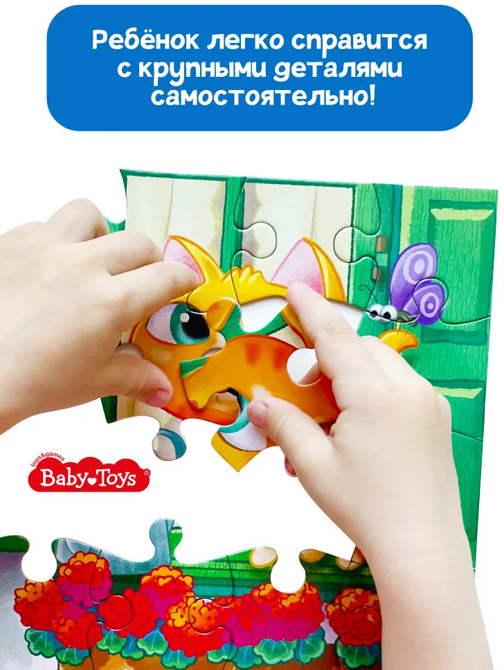 Baby Toys Пазл «Котик»-25% +29 крупные детали яркий рисунок твердый картон подходит малышам