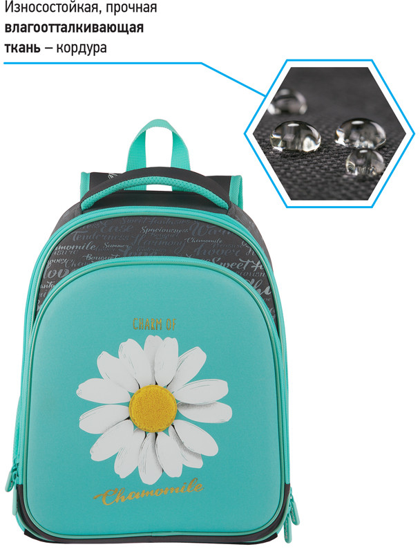Эргономичный ранец для девочки Berlingo Expert Plus серии Chamomile подходит для детей младшего и среднего школьного возраста. Модель выполнена из легкого экологичного ЭВА-материала с покрытием из высокопрочной нейлоновой ткани кордура, которая обладает водоотталкивающими свойствами и легко чистится.