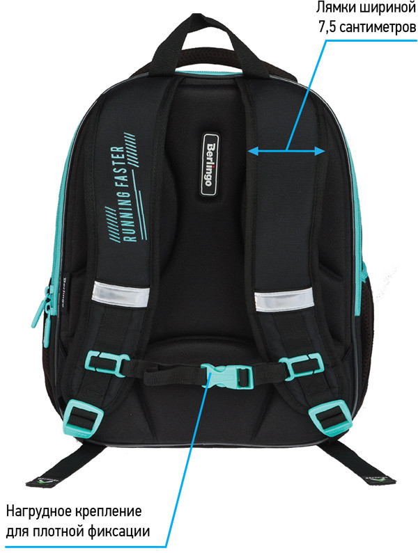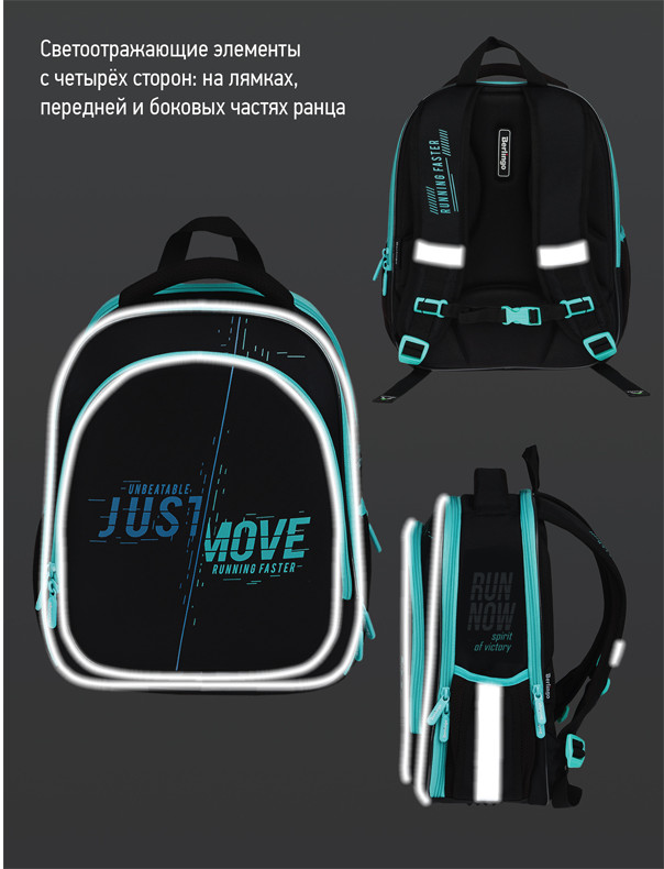 Эргономичный облегченный ранец для мальчика Berlingo Expert Light серии «Just move» рассчитан на учеников младшей и средней школы.