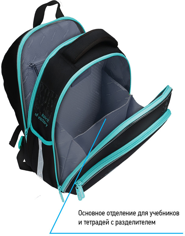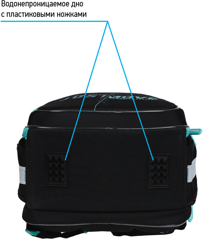 В модели объёмом 16 литров предусмотрены 3 отделения, 2 боковых кармана. Внутри имеются разделители для учебных пособий, карман на молнии, карабин для ключей, именная карточка. Передняя часть и спинка ранца жесткие, а боковые панели уплотнены слоем спонжа. Благодаря анатомической формованной спинке из ЭВА, а также регулируемым по длине лямкам и нагрудному креплению он плотно фиксируется на спине ребенка. Дно выполнено из водонепроницаемого материала с пластиковыми ножками для защиты от влаги. Ранец оснащен плотной ручкой и петлей для подвешивания. Световозвращающие элементы на передней части, сбоку и на лямках обеспечивают безопасность в темное время суток. Вес менее 800 грамм.