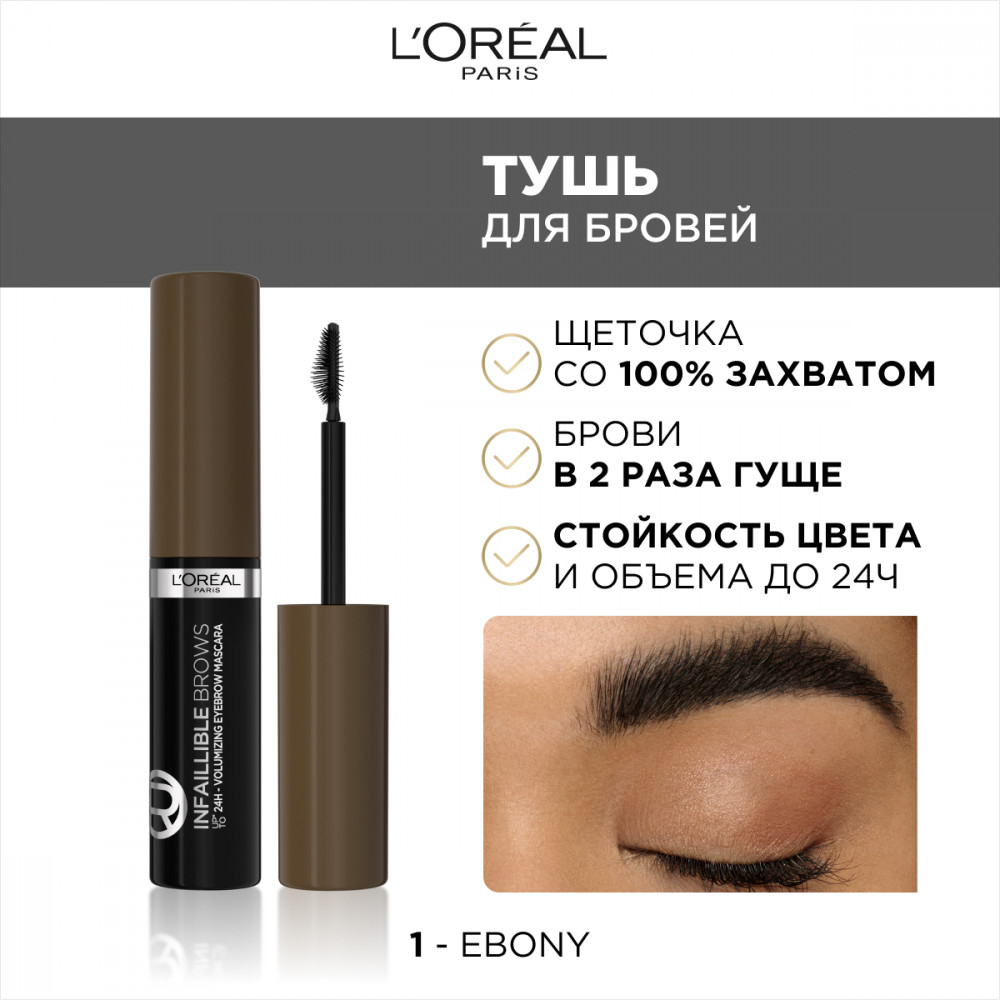 L'Oreal Paris Тушь для бровей «Infaillible Brows Volumizing Mascara», оттенок 1 Черное дерево
