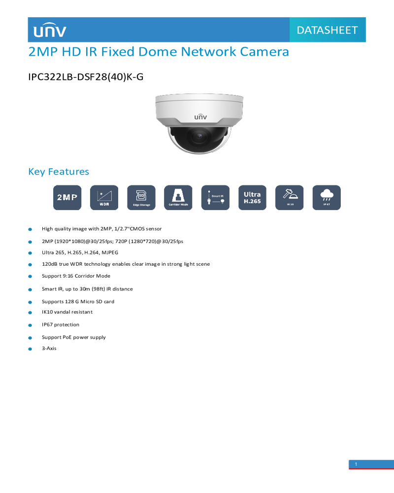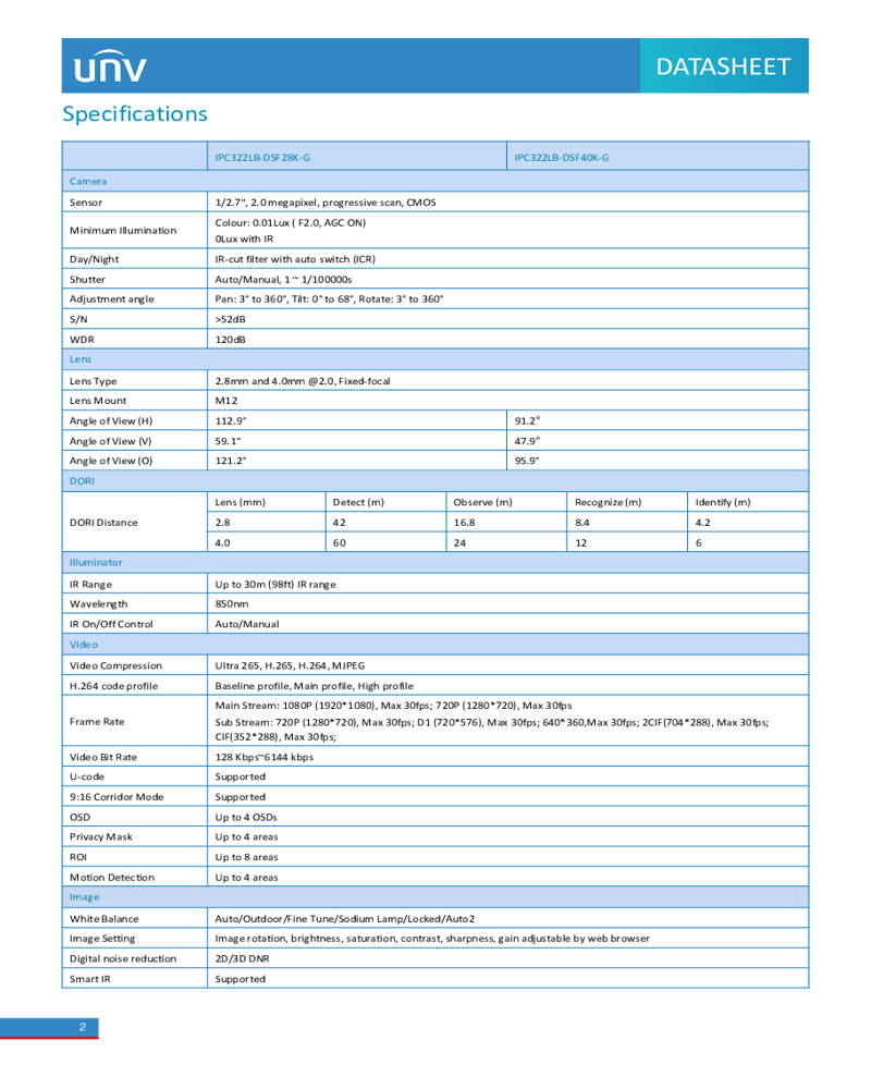 Uniview Видеокамера уличная IPC322LB-DSF28K-G+630