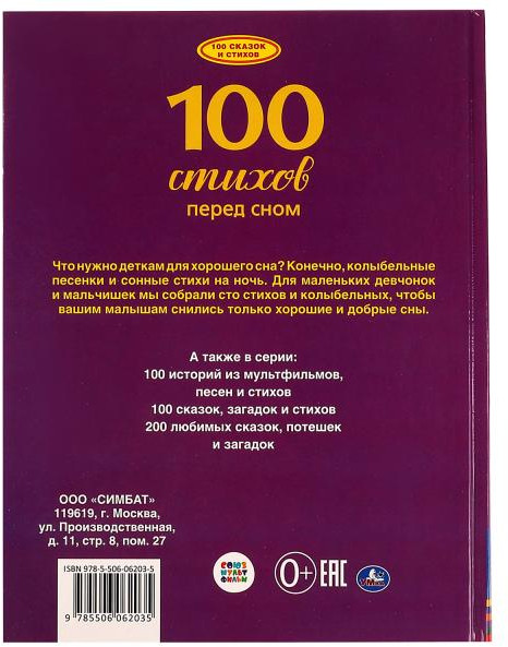 Серия: 100 сказок Книга «100 стихов перед сном» непременно понравится ребёнку: |