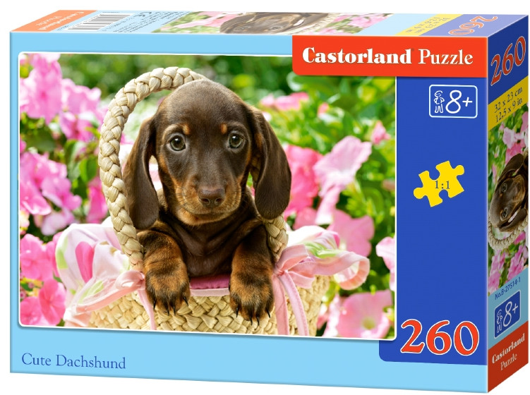 Castorland Puzzle Пазл для детей «Такса»В данный момент этот товар отсутствует в продаже. Возможно, у нас найдется аналогичный или похожий товар здесь. Пазл — это занимательная развивающая и обучающая игра, которая требует усидчивости, аккуратности, терпения и внимательности. Собирая картинку из фрагментов с пазловым замком, ребёнок познает связи между частью и целым, развивает логическое мышление и мелкую моторику рук. |