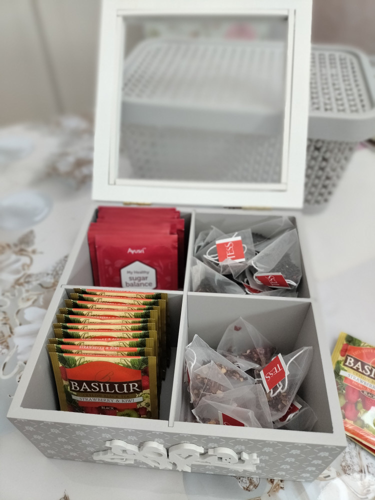 бұл өте әдемі, ыңғайлы, ағаштан жасалған қорап. шәйлар пакетиктегі салып қойса үстелде әдемі болып көрінеді. сапасы өте жақсы. өндірген Ресей