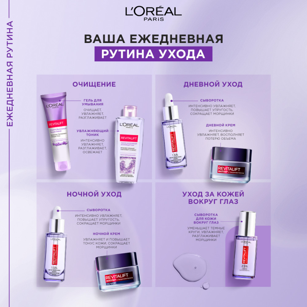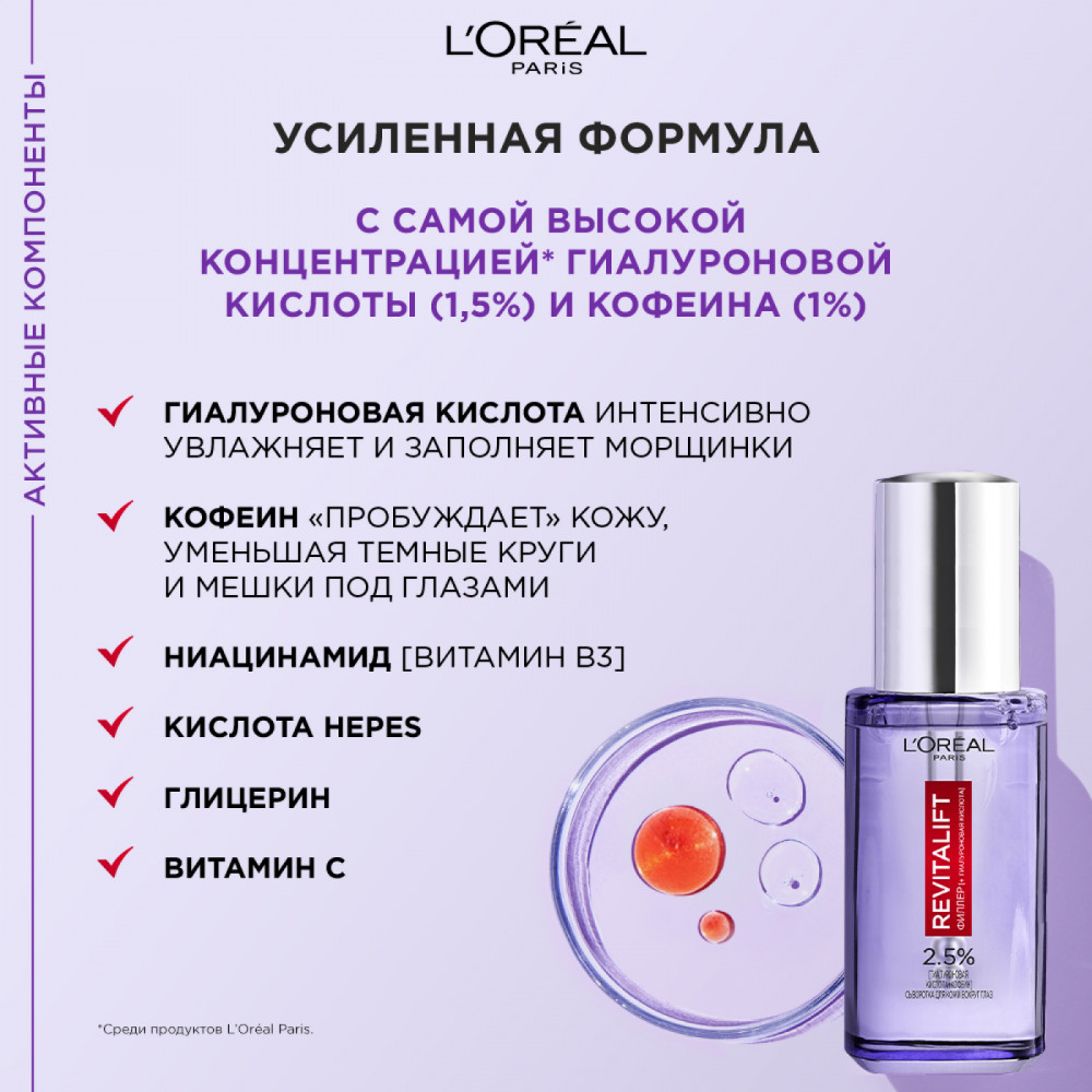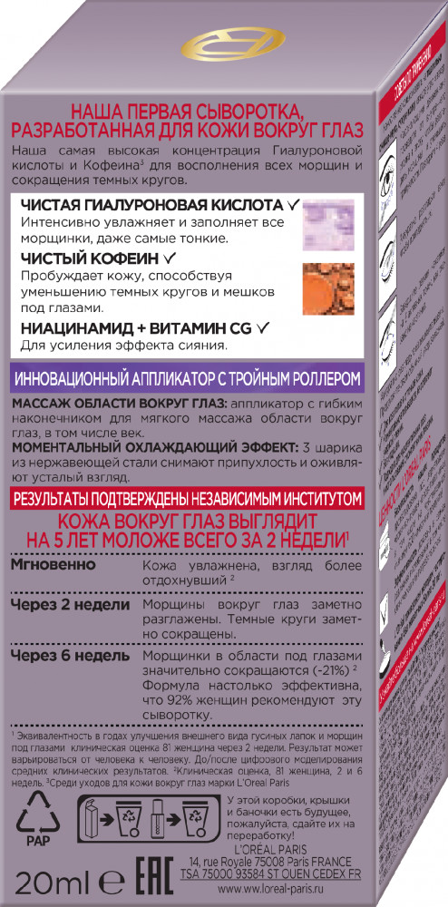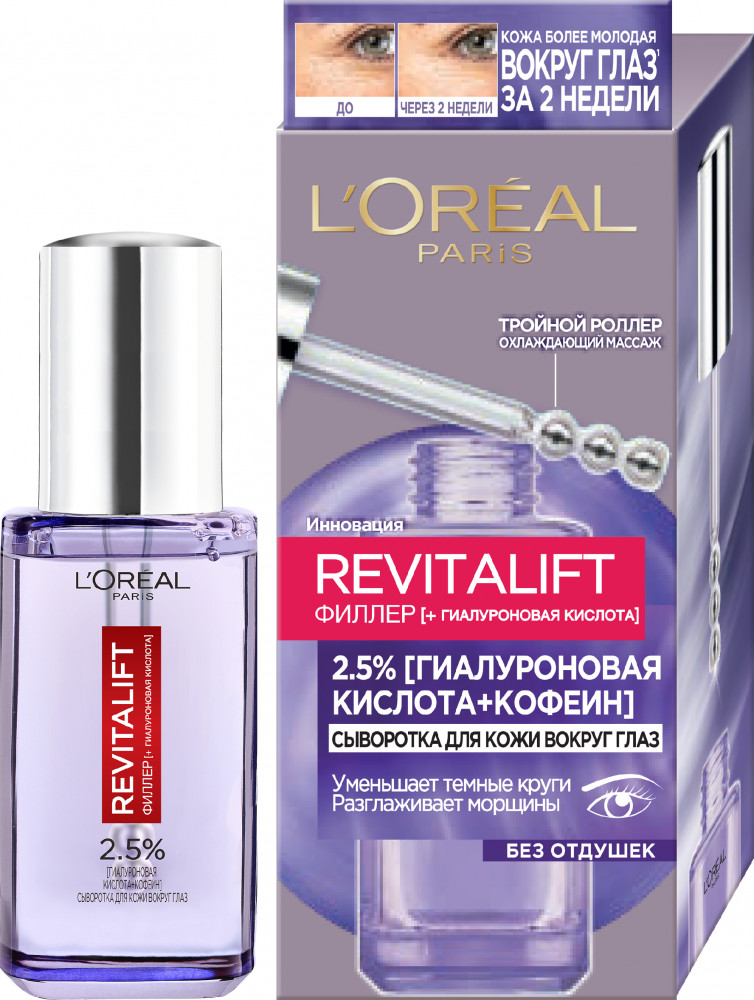 L'Oreal Paris Сыворотка для кожи вокруг глаз «Ревиталифт Филлер» 2,5% гиалуроновая кислота + кофеин-32%