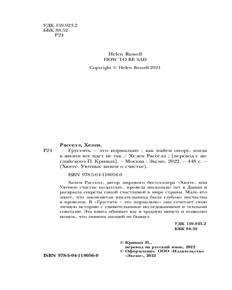 💳 Оплатить за товар можно при получении 🇰🇿 Есть бесплатная доставка по Казахстану 🎁 Копите бонусы с каждой покупки Серия: Хюгге. Уютные книги о счастье Хелен Расселл, автор мирового бестселлера «Хюгге, или Уютное счастье по-датски», провела несколько лет в Дании и раскрыла секреты самой счастливой в мире страны. Мало кто знает, что знаменитая писательница была глубоко несчастна в прошлом. В «Грустить — это нормально» она сочетает свою личную историю с удивительными исследованиями и теплыми советами. Эта книга обнимет вас в трудную минуту и позволит понять, что лишних эмоций не бывает. |